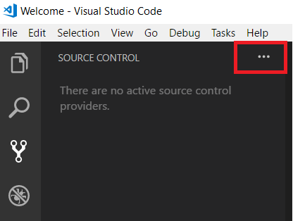 I corrected the problem by creating a new folder and setting it as the workspace. To do this. I selected File -> Add Folder to Workspace. Once the workspace was created, I opened the Source control tab, and the Git options were available once more. This was evident by the Git symbol next to the ellipses.