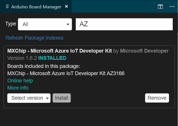 I’ve recently started working with the MXChip 3166 and Azure IoT. While following the “Connect IoT DevKit AZ3166 to Azure IoT Hub” instructions (https://docs.microsoft.com/en-us/azure/iot-hub/iot-hub-arduino-iot-devkit-az3166-get-started ), I couldn’t get the Arduinio Board Manager software to run from within Visual Studio Code.
